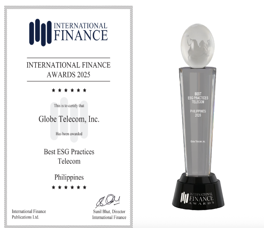 Globe has won the 2025 International Finance Awards (IFA) for Best ESG Practices in Telecommunications (Philippines), in recognition of its efforts to support a resilient, inclusive, and thriving digital future